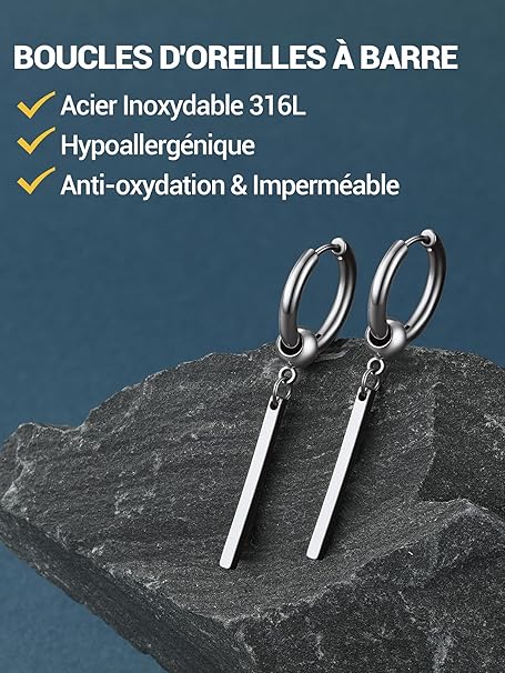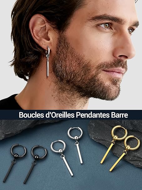 Fabriquées en acier inoxydable de haute qualité, ces boucles d’oreille homme sont :