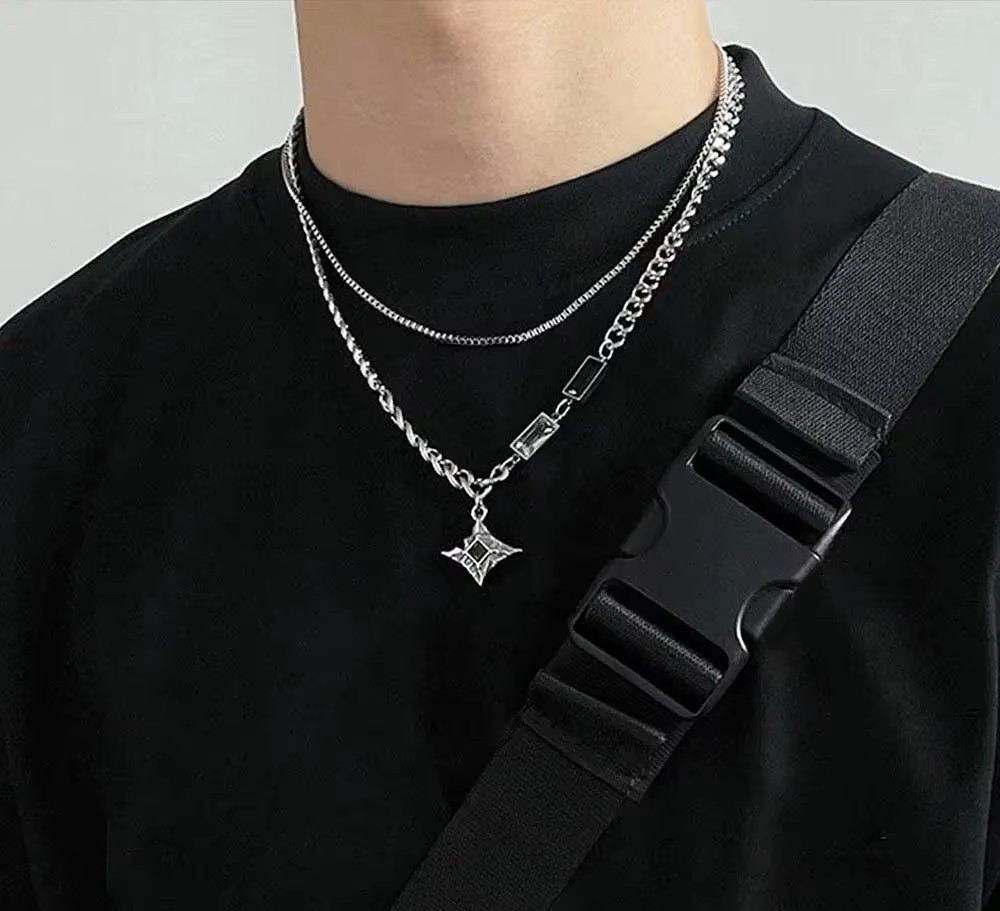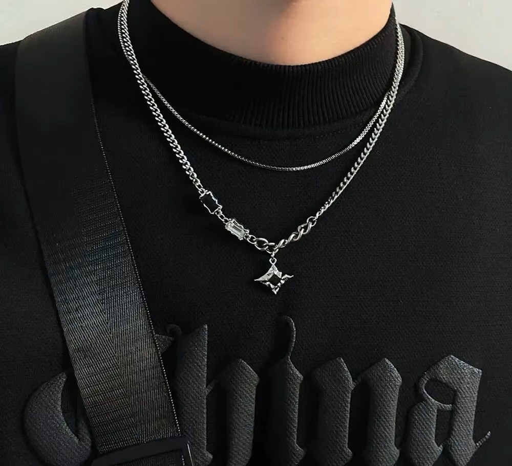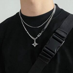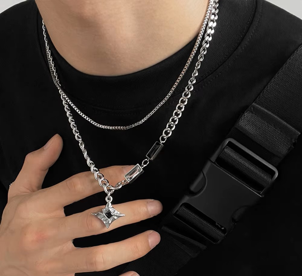 Apportez une touche de style à votre tenue avec ce collier homme double chaîne avec pendentif étoile en zircon. Inspiré de la culture hip hop et streetwear, ce bijou tendance combine élégance moderne et caractère affirmé.